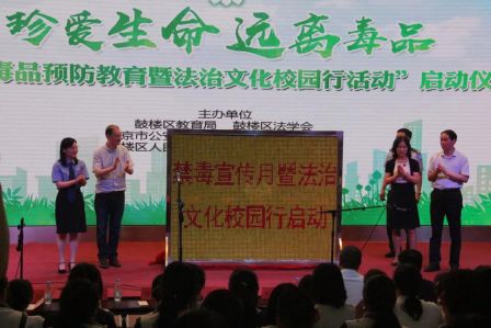 为贯彻落实全国法学会“2019年青年普法志愿者法治文化基层行”活动要求,进一步加强我区中小学校园安全预防教育工作,提升在校学生防范不安全危害的能力,6月28日下午,鼓楼区法学会与鼓楼区教育局、公安分局、区检察院和区司法局在南京大学附属中学大礼堂联合举办了“鼓楼区毒品预防教育暨法治文化校园行活动”启动仪式。省、市相关领导以及鼓楼区属学校德育干部、各街道禁毒办民警、禁毒社工和南大附中在校师生等500余人参加。这也标志着2019年鼓楼区法学会“法治文化校园行”活动正式拉开了序幕。