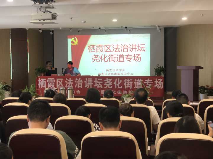 近日,栖霞区法学会在尧化街道举办法治讲坛,街道相关领导、综合执法大队、机关科室负责人及各社区干部参加了听课。南京大学法学院副院长、教授王太高围绕行政执法进行了专题辅导。王院长讲课内涵丰富,理论深邃,思想超前,与会人员听了很是受益,对今后如何更好地开展行政执法工作起到了很好的指导作用。