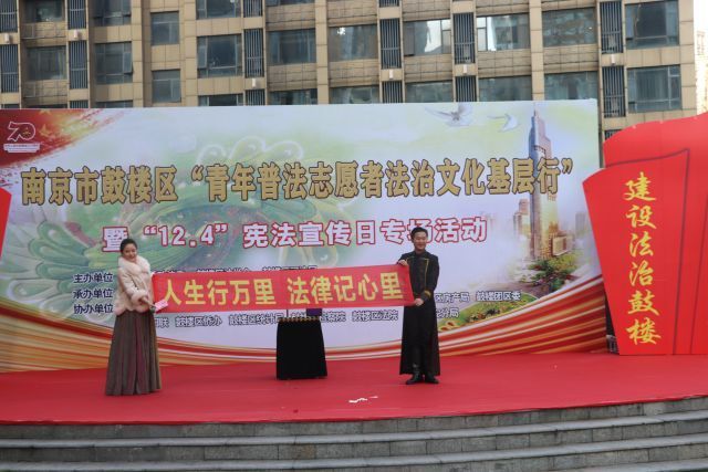 12月4日下午,南京市汉中路6号“华侨文化广场”充满着喜庆祥和的氛围,伴随着冬日里温暖的阳光,“南京市鼓楼区‘青年普法志愿者法治文化基层行’暨‘12.4’宪法宣传日专场文艺汇演”在这里闪亮登场。这是一台以“弘扬宪法精神,建设法治鼓楼”为主题、“寓教于演、寓教于乐”的文艺汇演,也是一次南京市鼓楼区法学会践行习近平总书记在中央政法工作会议上的重要讲话精神和中国法学会第八次全国会员代表大会精神的成果汇报,整场演出特色鲜明、亮点纷呈。