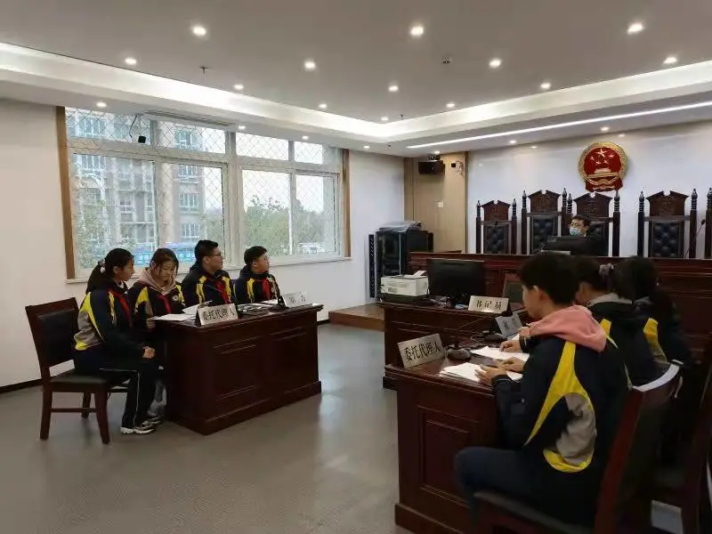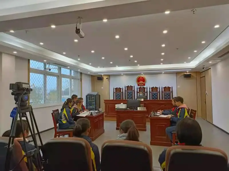 在完成各项庭前准备工作后,同学们满怀期待地进入法庭,开始了今天活动的重头戏——“仿真庭审”。
