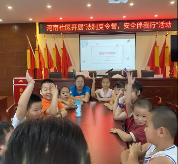 线上活动有序推进,线下活动也如火如荼开展。江宁区美丽乡村普法服务中心在相关部门的指导下,积极与辖区内部分社区联系,与社区妇联、民政联合开展了以法治安全教育为主的系列夏令营活动。孩子们在志愿者的带领下,寓教于乐,既结识了新朋友,度过了快乐的时光,感受到了党和政府的关怀,又学到了法律常识,提高了自我保护能力,提升了法治意识,为将来走入社会、做一个懂法守法的公民,进行了必要的知识储备。
