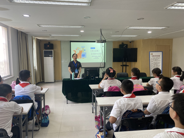 9月4日下午,玄武区法学会开展“普及《民法典》,护航开学季”为主题的未成年人普法宣讲活动在小卫街社区道德讲堂如期举行!42名南京农业大学实验小学六(1)班的学生们整齐落座,玄武区人民法院法官助理王婵,为孩子们带来了一堂精彩的法治讲座。