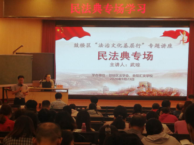 9月23日下午,南京市鼓楼区“法治文化校园行”——“民法典学习专场会”,在南京金陵汇文学校中学部报告厅举行。该校各年级部200余名老师参加了学习活动。