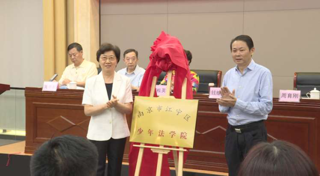 9月21日下午,江宁区少年法学院揭牌仪式暨工作推进会议在区综治中心举行。市关工委副主任钱继红、江宁区委常委、政法委书记、区法学会会长周育刚共同为江宁区少年法学院揭牌。江宁区少年法学院成立后,将抽调具有丰富实践和宣讲经验的在职法官、检察官、警官、公证员、律师及部分关工委退休老同志,组成江宁区政法系统关工委德法宣讲团,同步开展青少年法治教育工作,提升少年法学院的教育水平和教育质量。