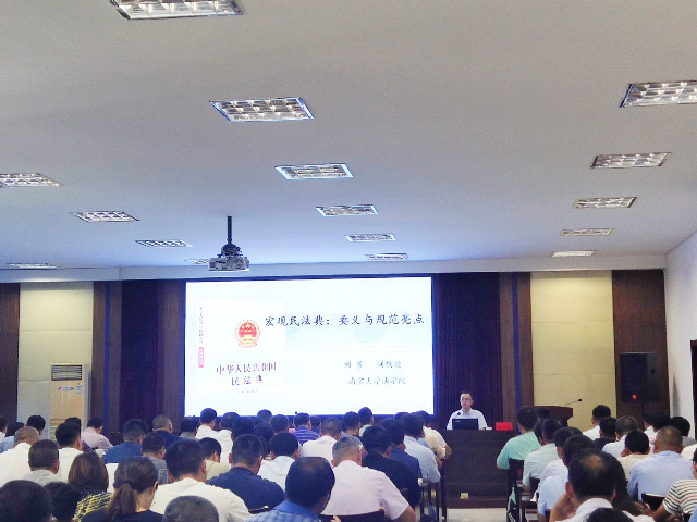 为提升基层治理队伍的理论素养和业务水平,高淳区举办全区基层治理专题培训示范班,民法典宣讲是其中一项重要内容。刘院长从民法典的宏观历程出发,讲述我国民法典制定的过程,从“变”与“不变”着手,将民法典的显著变化、承上启下部分及其原因娓娓道来,详细解说了人格权编的主要内容,再由一个个鲜活的案例一一解说民法典中的其他“新”制度。渊博的知识,风趣的语言,整个讲座既有学术性、专业性,又有趣味性、实用性,让全体与会干部在会心一笑中理解、牢记《民法典》的要义与规范。