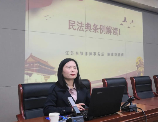 10月15日,中国法学会会员、江苏东银律师事务所律师陈雅琼为江宁平安志愿者基地培训班学员宣解《民法典》。