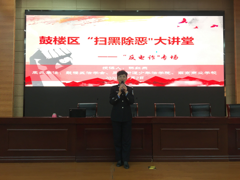 为提高学校师生反诈防骗意识,构筑防范电信诈骗的第一道防线,11月2日下午,鼓楼区扫黑除恶大讲堂专场活动走进南京商业学校。鼓楼区法学会、凤凰街道少年法学院、南京商业学校共同邀请了南京市公安局刑侦局反诈中心民警陈红燕为该校师生开展“反电信诈骗”专题宣讲。鼓楼区法学会常务副会长谈国苹及南京商业学校财经系300多名师生参加了本次活动。