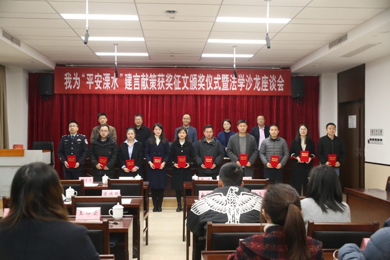 11月25日上午,溧水区委政法委、区法学会在区委党校举办了“我为‘平安溧水’献言献策征文”获奖作者颁奖活动暨法学沙龙座谈会,市法学会专职副会长丰友芳、溧水区委常委、政法委书记陈霞、区委政法委相关负责同志,区法学会部分副会长和征文获奖人员参加活动。