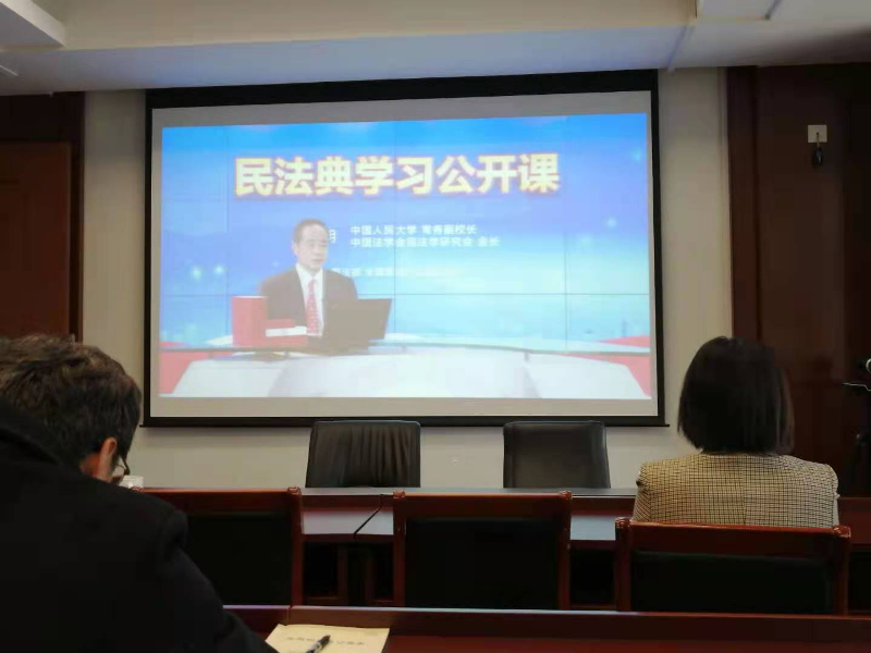 12月3日下午,鼓楼区委政法委组织观看《民法典学习公开课》,全委干部认真聆听了中国人民大学常务副校长、中国法学会民法学研究会会长王利明的讲解,进一步加深了对《民法典》中国特色、实践特色和时代特色的了解和认识,对全委干部运用法治思维武装头脑、指导实践、提升依法履职能力,打下了坚实基础。
