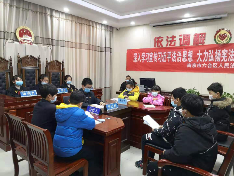 12月4日,国家宪法宣传日,六合区法学会开展了一场生动的“模拟法庭”活动,区法学会专职副会长金相保到场并指导开庭活动。