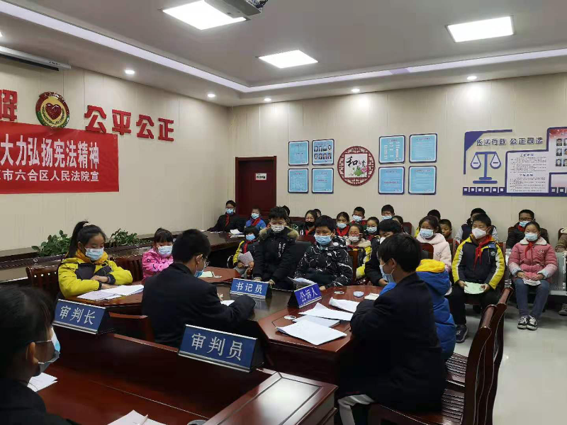 六合区法学会发出开展“模拟法庭”活动通知后,得到了区法院、教育局和司法局的大力支持。区法院结合当前中小学生涉法生活实际情况,精心选择了一起在校学生盗窃案件作为本次活动的主体内容,区教育局积极做好学校、家长和学生本人的工作,确保“模拟法庭”活动的正常开展,司法局在冶山司法所提供并布置场地,参加师生约80余名,活动取得了圆满成功。