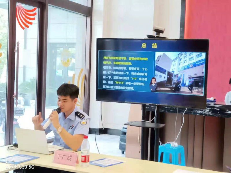 两位警官结合近年来发生的多起电信诈骗案例,深入浅出地为辖区居民介绍了电信诈骗的特点及不法分子常用的作案手段,对于进一步提高居民群众防范电信诈骗意识,增强自身防骗能力,必将产生较强的促进作用。