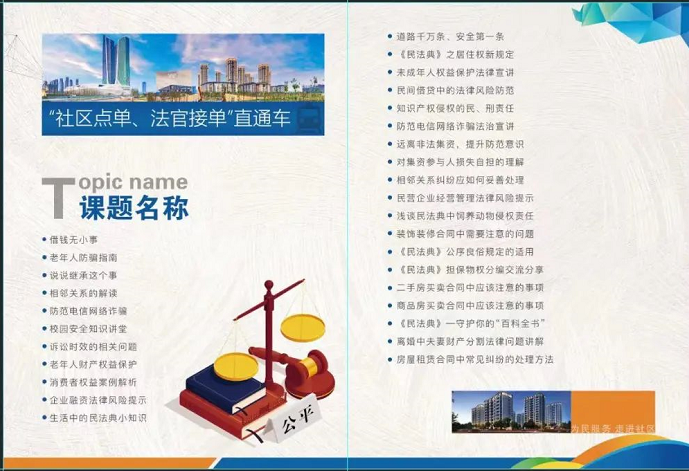 “你们的需求,我们一定满足。我们正在开展‘社区点单,法官接单’活动,我来联系安排‘民法典宣讲团’来进行法律宣讲和答疑解惑。”