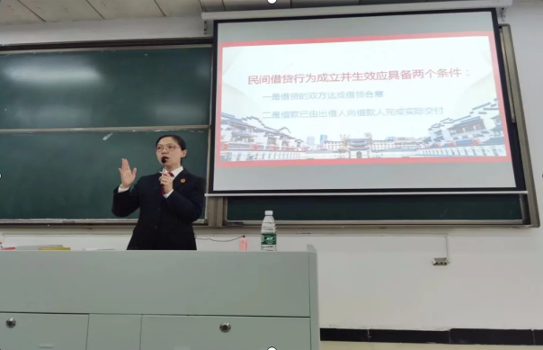 为加大普法宣传力度,加强法治宣传教育,切实提高大学生关于“民间借贷”法律问题的法律意识,受南京理工大学紫金学院邀请,秦淮法学会会员张阳阳法官走进校园,为学院近200名法学专业大一学生进行了一场详实生动的法治宣讲活动。
