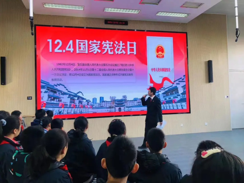 12月3日上午,在国家宪法日来临之际,为弘扬宪法精神,进一步激发青少年学生学习宪法和法律的热情,营造良好的校园法治教育环境和氛围,秦淮区法学会会员段海龙法官走进游府西街小学,以宪法伴我成长为题,为该校学生讲述宪法相关知识。
