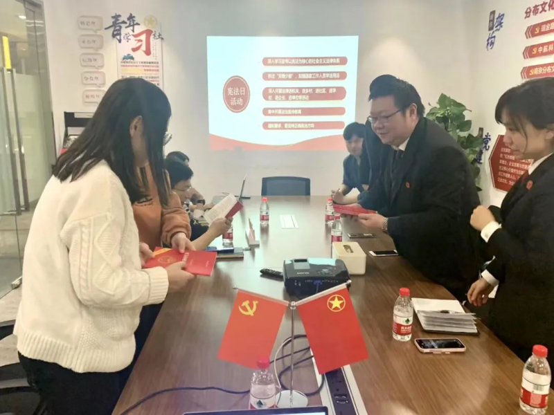 为弘扬宪法精神,传递法治力量,12月3日下午,秦淮法院知识产权庭走进辖区企业南京分布文化发展有限公司,开展“宪法宣讲进企业”活动。