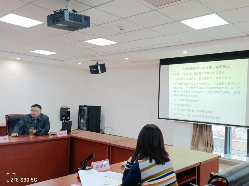 鼓楼区法学会副会长、鼓楼区长江生态环境资源保护法学研究会副会长、南京工业大学法学院副院长张治宇教授主讲《长江禁捕的行政执法要求及意义》。
