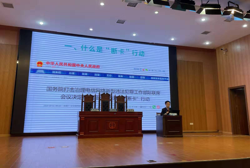 模拟法庭活动后,六合区法学会青年法学志愿者宣读团成员李永超为广大师生讲授了一堂精彩的《防范电信网络诈骗及开展“断卡”行动》课,通过告诉学生“断卡”是断什么卡?为什么要实施“断卡”行动?公安机关对认定的出租、出借、出售、购买银行账户(含银行卡)或者支付账户的单位和个人及相关组织者,假冒他人身份或者虚构代理关系开立银行账户或者支付账户的单位和个人如何惩戒,以及“断卡”行动中同学们要做什么?教育学生要加强自身金融知识学习,提高风险识别及防范能力,切实保障自身资金安全。
