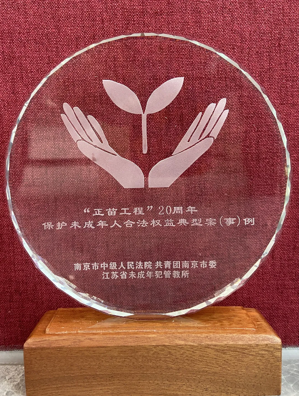 近日,南京中院、团市委、江苏省未成年犯管教所联合开展的“正苗工程”20周年主题帮教活动中,秦淮法院刘浩冬法官审理的一起惩戒校园欺凌的刑事案件入选“正苗工程”20周年保护未成年人合法权益典型案例。