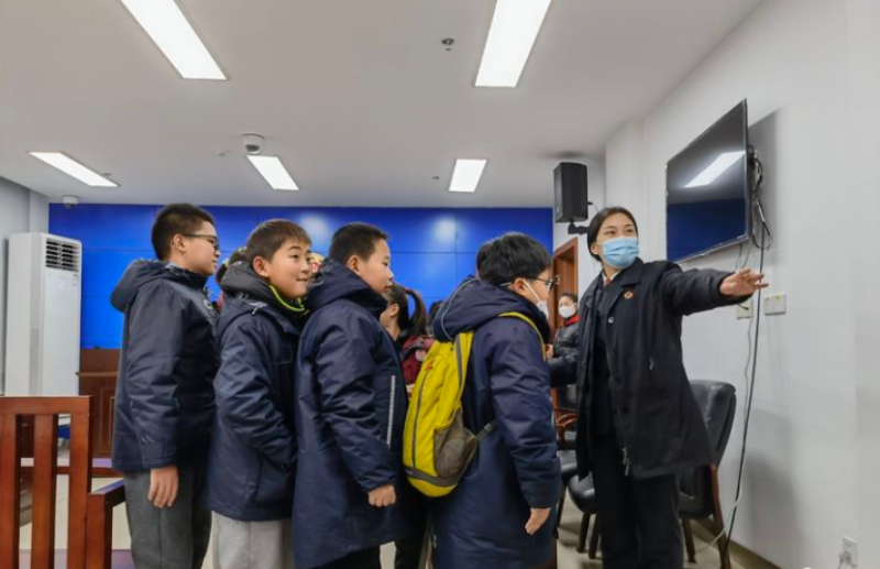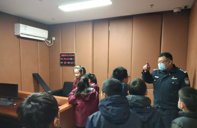 2022年1月24日下午,来自南京市小营小学、秦淮区戎苑社区的十余名同学在家长和老师的陪同下来到了秦淮区人民检察院,首先在法警的带领下参观了刑事案件办案区,详细了解了听证室、询问室、讯问室的各项功能。