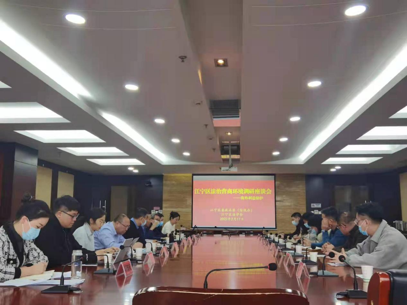 2月17日,江宁区法学会、区防线办联合河海大学课题组,邀请奥赛康药业、爱德印刷等8家辖区内“走出去”企业代表座谈,深入了解企业在海外利益保护方面需求,探讨新形势下如何更好的发挥政法职能为涉外企业提供法律服务,更好的优化法治营商环境。江宁区委政法委副书记夏玉龙、河海大学法学院副院长陈广华参加会议。