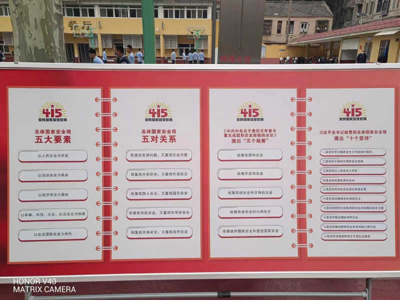 相关人员深入学校、企业,门店等,分发了《国家安全法》、《反间谍安全防范工作条例》等宣传资料、八五普法宣传册。通过在学校放置展板,在社区公告栏悬挂、张贴海报等形式,多角度、全方位让居民群众知晓、了解,增强群众的国家安全法治观念。动员辖区内有LED显示屏的街道、企业、门店播放《国家安全法》、《反间谍安全防范工作条例》相关视频。进一步增强人民群众的“国家安全重于泰山”、“国家安全,人人有责”的理念。