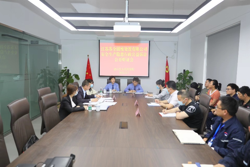 5月7日下午,浦口区检察院就江苏苏全固体废物处置有限公司安全生产行政公益诉讼案在该公司现场召开公开听证会。浦口区两个职能部门及经济开发区有关领导参会,并邀请区法学会秘书长黄文婷作为听证员参会,区检察院党组成员、副检察长魏曼主持会议。