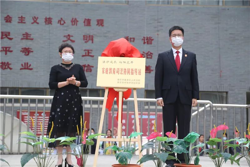5月9日,在第一个全国家庭教育宣传周到来之际,秦淮法院与中华中学共同举办“向阳花开家庭教育司法协同指导站”揭牌仪式。
