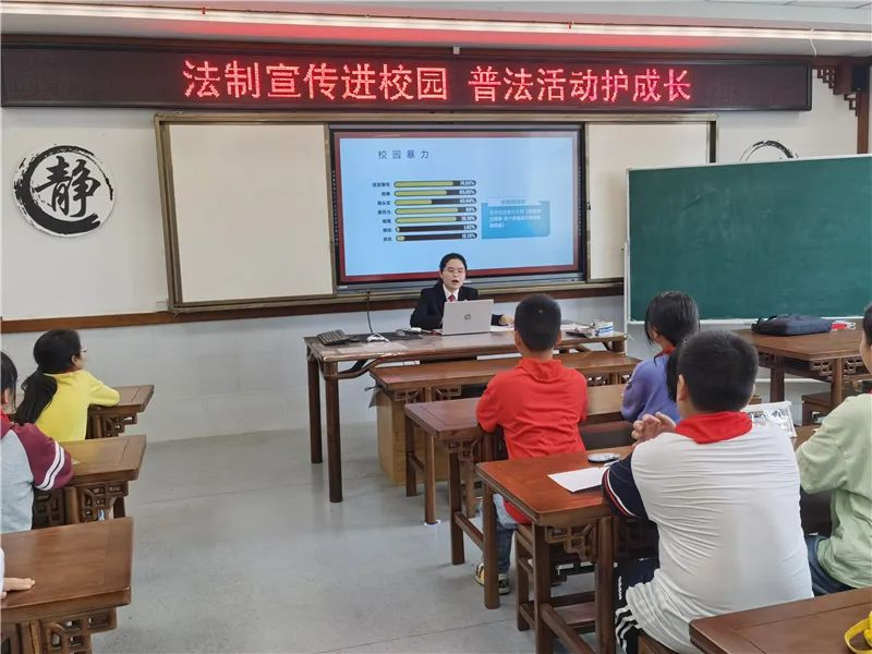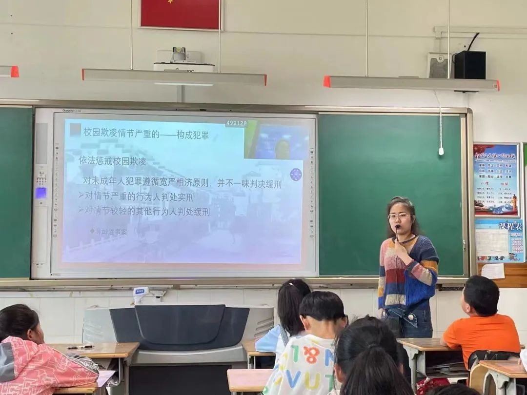 为保证法治宣传活动对象的针对性与内容的精准性,提升普法效果,石玥根据学校的要求,在活动当日,通过“现场展示+线上直播”的方式给全校师生上了一堂《拒绝校园欺凌 构建和谐校园》的法治教育课。