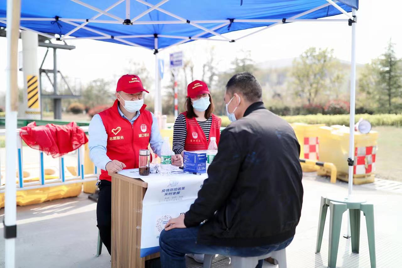 3月14日——4月14日,浦口区司法局党组书记、局长,浦口区法学会副会长吴峰带领局领导班子全体成员,分别抽调30名党员干警、20名党员干警,先后前往永宁街道和国、省边界交通卡口,重点针对入宁车辆和人员,实行24小时三班制,在国、省界交通卡口做好现场信息查验登记、秩序引导等工作,迅速筑起应对疫情的坚实交通防线。