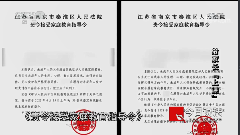了解相关情况后,秦淮法院少家庭顾荣荣法官当即依据《中华人民共和国家庭教育促进法》规定向双方下发《责令接受家庭教育指导令》,要求双方在线接受家庭教育指导。