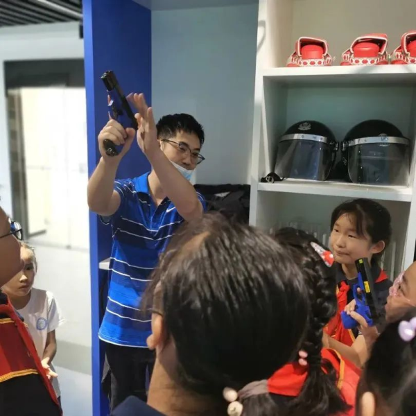 队员们在讲解员的带领下走进思政工作室,走进红色课堂,向平凡而又伟大的警察英模们学习。队员通过扮演不同角色,体会不同警察分工的工作要求,还在警员的指引下,体验了模拟射击,收获满满。