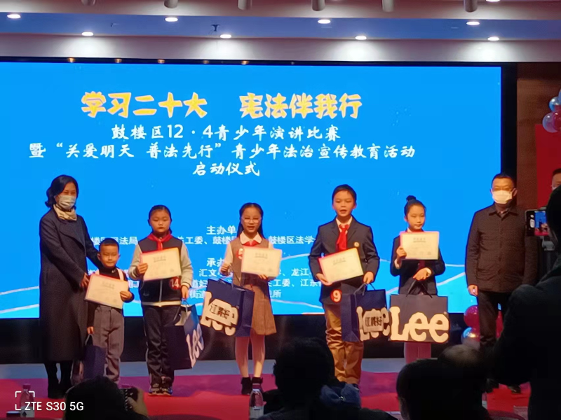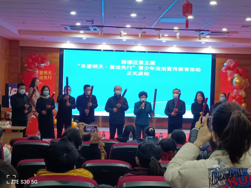 2022年12月10日上午,鼓楼区在江东街道睿城社区二楼小剧场举办“学习二十大,宪法伴我行”青少年演讲比赛暨“关爱明天,普法先行”青少年法治宣传教育活动启动仪式,学习宣传贯彻党的二十大精神,推动全区上下全面贯彻实施宪法。鼓楼区委政法委书记、区法学会会长何建,鼓楼区关工委常务副主任王红云等领导及区司法局、法学会等单位工作人员和江东街道五校联盟(银城小学、汇文小学、科睿小学、龙江小学、宝船小学)师生等共100余人参加了当日活动。