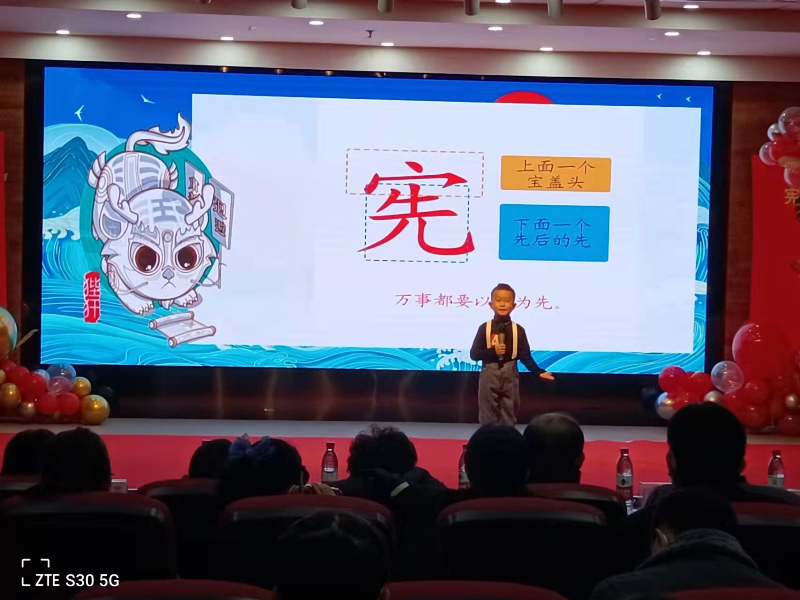 按照抽签顺序,江东街道五校联盟学生代表上台演讲。