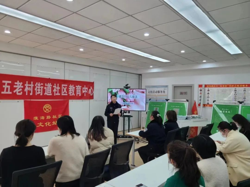 在淮海路社区,政法网格员淮海路派出所民警、社区普法志愿者汪学民为20余名机关女干部职工解读《妇女儿童权益保护法》,汪警官结合具体案例“以案释法”,深入浅出地把与妇女儿童、婚姻家庭生活息息相关的法律法规送到她们身边,提高妇女儿童的自我保护能力,学会使用法律武器维护自己的合法权益。