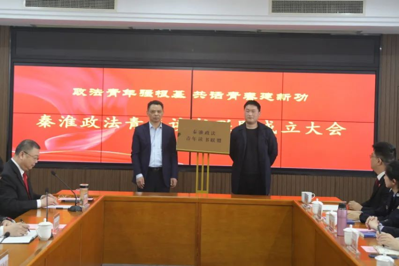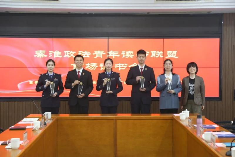 区法学会专职副会长陈新立、团区委副书记王新共同为秦淮政法青年读书联盟揭牌。宣读秦淮政法青年读书联盟《联盟章程》。