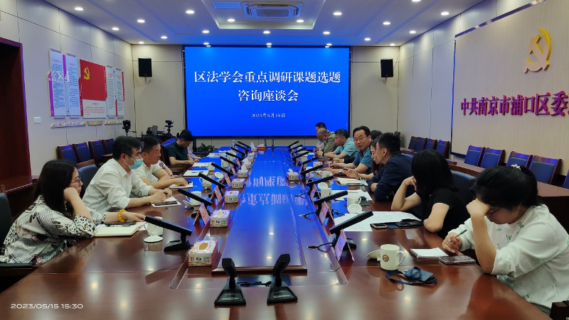 5月15日下午,浦口区法学会召开重点调研课题选题咨询座谈会,区政法各单位、各街场有关科室负责人参加,同时邀请江苏警官学院3名教授参与座谈。