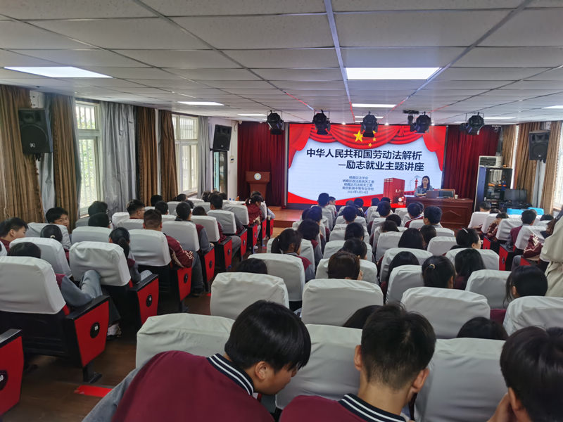 又一年的毕业季到了,为更好地使即将走上社会的同学们增强劳动者的法治意识、法治观念,在求职过程中保障自身合法权益,5月24日,栖霞区法学会联合区政法系统关工委,邀请江苏彦圣律师事务所主任律师宗雪,赴区司法局关工委共建阵地—南京新港中等专业学校(尧化校区)开展了一场“梦想你好”励志就业主题班会活动,区法学会专职副会长丁磊、秘书长徐娟,区司法局四级调研员房向阳,区司法局关工委常务副主任杨金富、秘书长李明贤,学校团委书记薛雯等参加了此次活动。