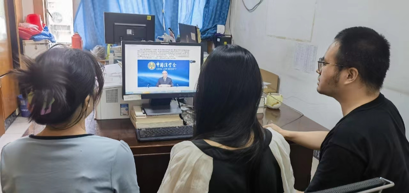 为贯彻落实省市法学会关于组织参加《中国法学会〈关于举办学习贯彻习近平法治思想培训班的通知〉》精神,六合区法学会专门下发通知,要求全区198名法学会会员和850多名法学会志愿者在电脑和手机上自行参加培训。6月28日下午,六合区政法委副书记、法学会会长袁祝祥组织政法委机关学习习近平法治思想系列讲座。