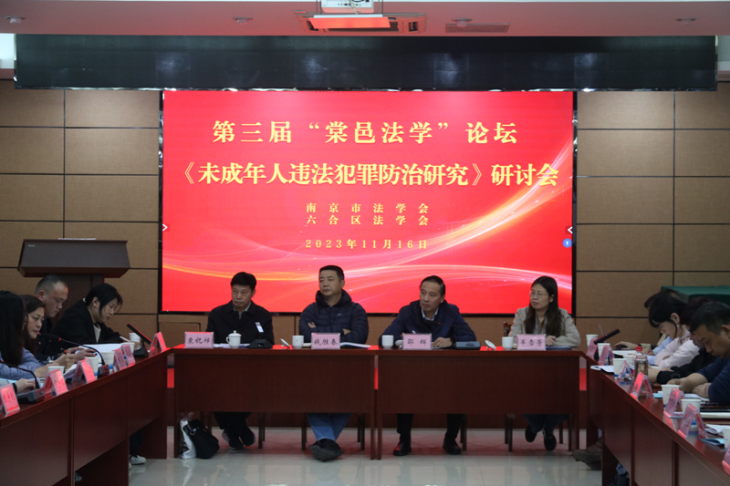 11月16日,南京市法学会和六合区法学会联合举办第三届“棠邑法学”论坛《未成年人违法犯罪防治研究》研讨会。南京市法学会专职副会长钱胜春、六合区政协副主席邵辉,六合区法学会副会长、常务理事、会员代表、区法学会志愿者代表、区政法各部门分管领导、街镇综治办主任和高等院校专家教授共50多人参加了研讨会。研讨会由六合区委政法委副书记、法学会会长袁祝祥主持。