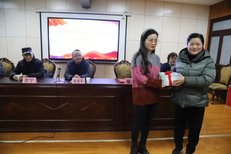 随后,秦淮区关工委副主任朱秀平、朝天宫街道党工委副书记张燕共同为评事街社区少儿法学院成立揭牌。朝天宫街道党工委副书记张燕向南京市府西街小学赠送《中华人民共和国民法典》,希望以书为媒,强化未成年人法治观念。现场,评事街社区党委书记为江苏镜见兴律师事务所律师王宥晴颁发“校外辅导员”聘书。