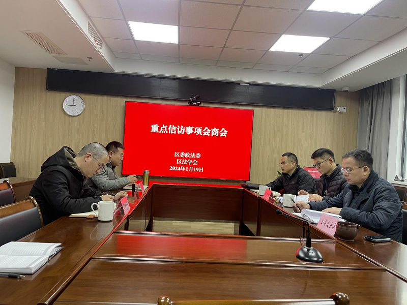 为进一步加强社会治理法治化,将信访纳入法治轨道,促进社会和谐稳定。1月19日,溧水区法学会组织召开重点信访事项会商会,邀请部分法学会会员参会,会议由区法学会常务副会长孔刚主持。