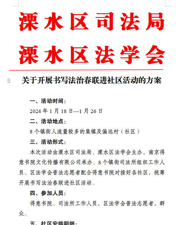 为营造春节前夕的法治氛围,丰富普法宣传载体,让法治宣传活动更加生动活泼,近日,溧水区法学会联合区司法局组织开展“书写法治春联进社区”活动,把新春祝福送到千家万户,把法治理念送进人民群众心中。