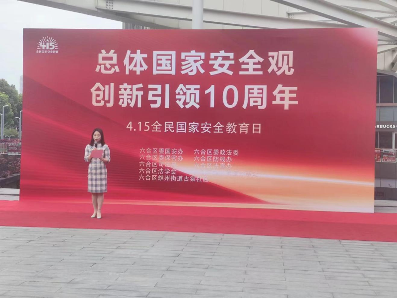 从4月11日起,六合区法学会和区委国安办、政法委等单位联合举办总体国家安全观创新引领10周年文艺巡回演出。首场演出在龙池街道举行,政府机关、街镇、村(社区)党员干部和群众近100多名代表观看了演出。