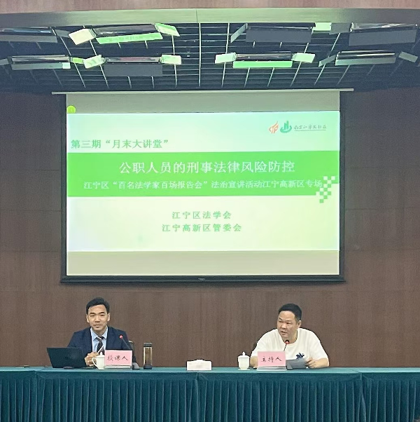 5月25日,江宁区法学会举办“百名法学家百场报告会”法治宣讲活动高新区专场,“双百”法治宣讲团成员李前飞律师围绕“公职人员的刑事法律风险防控”做专题授课。