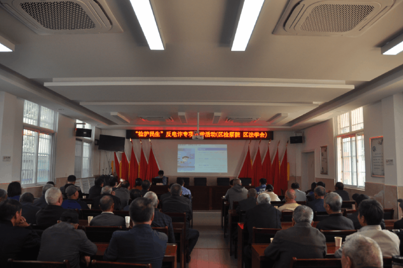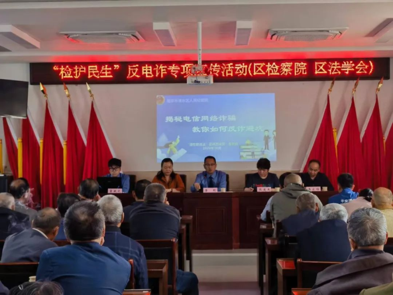 为进一步提高全民反诈意识,保护群众财产安全,10月10日上午,区法学会会同区检察院、东屏街道开展反诈宣传“基层行”活动。主会场设在东屏街道金湖社区,该街道10个社区554名党员、群众通过线上直播方式收听收看主会场反诈宣讲。区检察院党组副书记、副检察长唐明、区法学会专职副会长熊爱民及东屏街道政法委员潘家培参加活动。