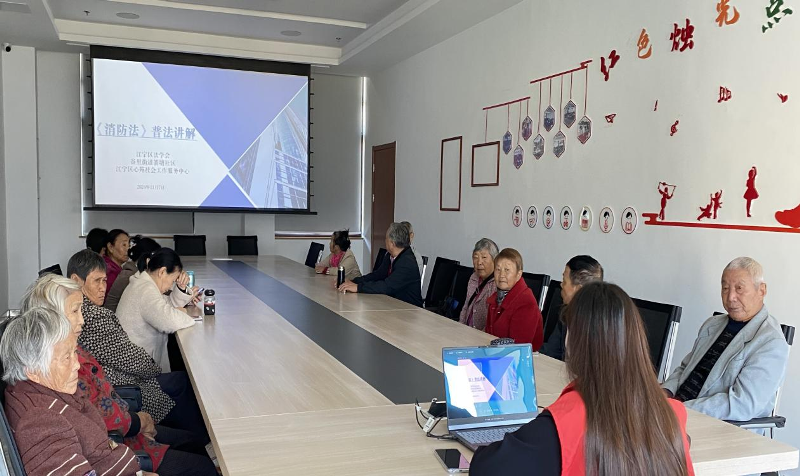 在第33个全国消防日到来之际,江宁区法学会于谷里街道箭塘社区举办了一场主题为“全民消防、生命至上”的消防普法宣传讲座。