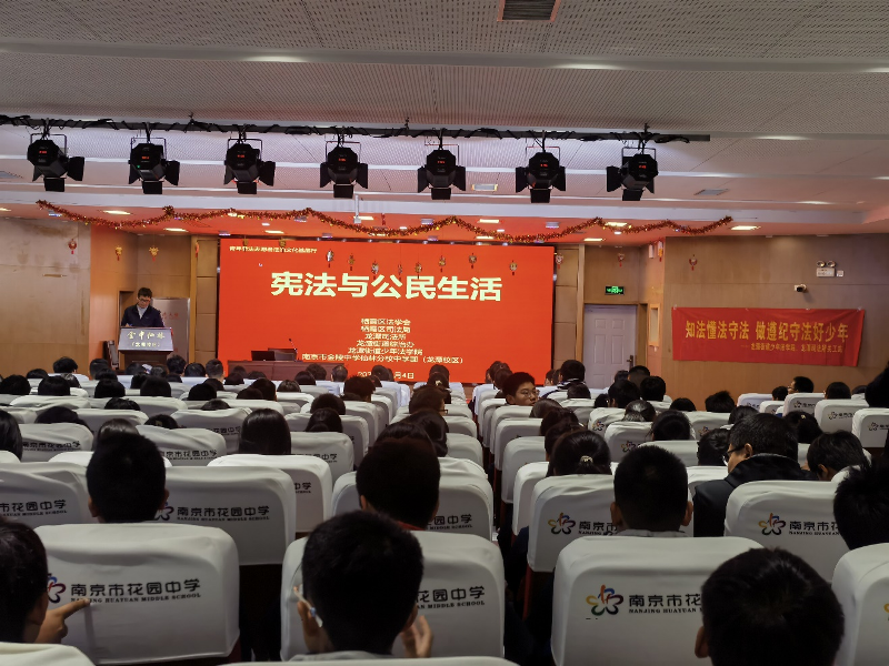 为进一步弘扬宪法精神,增强青少年的法治意识和法治素养,12月4日下午,栖霞区法学会联合龙潭街道司法所在金陵中学仙林分校中学部(龙潭校区),开展“国家宪法日”法治宣传进校园活动,让宪法走进校园,走进青少年心中。区法学会专职副会长、秘书长,龙潭街道司法所所长,及该校200余名师生参加活动。