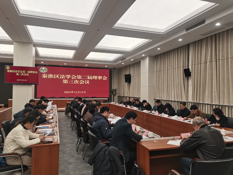 2024年12月12日,秦淮区召开法学会第二届理事会第三次会议,主要任务是深入贯彻落实习近平法治思想,传达学习中国法学会、省市法学会工作部署要求,全面推动区法学会工作高质量发展。区委常委、政法委书记、区法学会会长祁红出席会议并讲话,区法学会第二届理事会成员及新补选的副会长、常务理事、理事等39人参加。会议由区委政法委常务副书记、区法学会常务副会长郁晖主持。