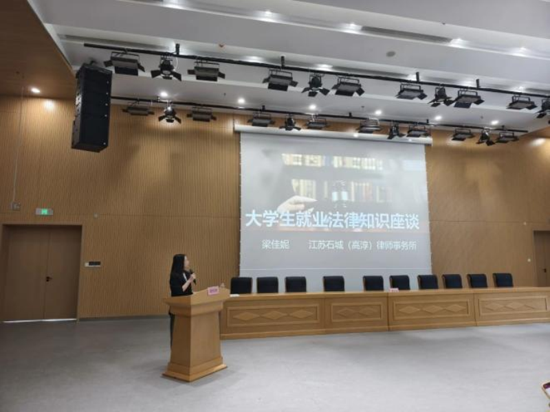 聚焦大学生就业创业法治需求及常见痛点难点问题,江苏石城(高淳)律师事务所梁佳妮律师精心设计讲课内容,以“大学生创业及求职相关法律知识科普”为主题,结合《中华人民共和国民法典》《中华人民共和国公司法》《中华人民共和国劳动合同法》等法律法规,通过“案例解析+法条解读+现场答疑”的形式,重点讲解企业组织形式、合同签订与履行、知识产权保护、融资风险等高频法律问题。针对大学生初入职场易遇的“试用期陷阱”“虚假招聘”“课余兼职”等风险,结合真实案例剖析法律责任,提醒学生增强合同意识和证据留存意识,为创业就业敲响了“法治警钟”。
